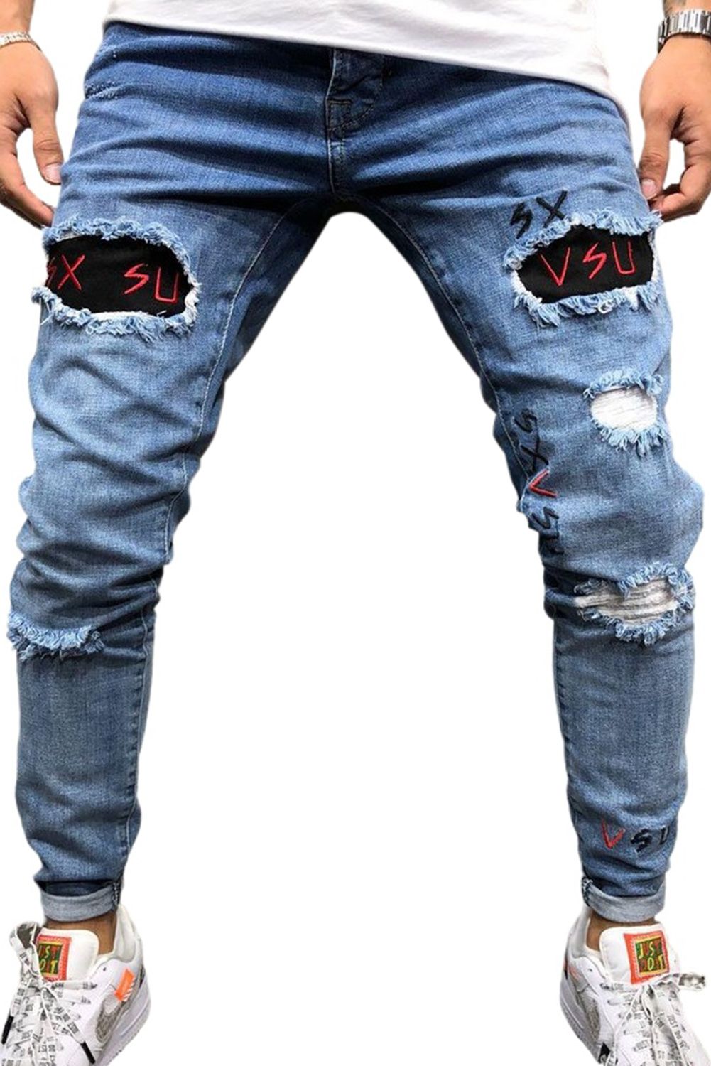 Men's Embroidered Ripped Jeans