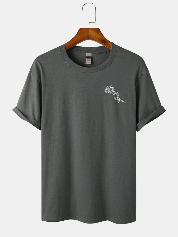 Mens Rose Chest Print Short Sleeve 100% Cotton T-Shirt