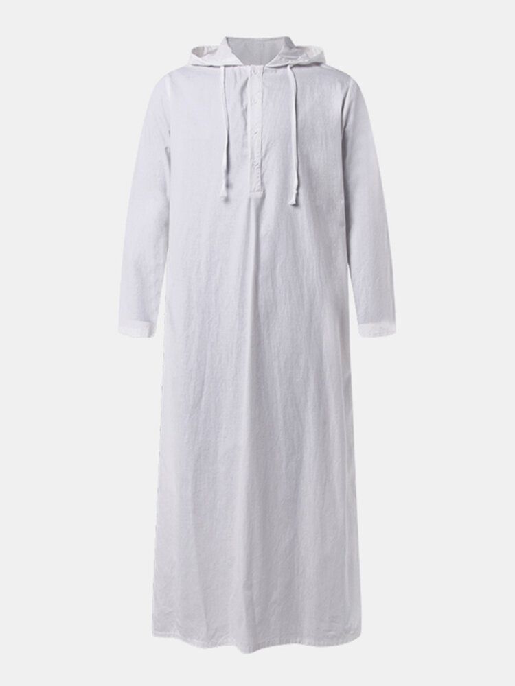 Men Cotton Middle Robe Solid Long Sleeve Hooded T-Shirt