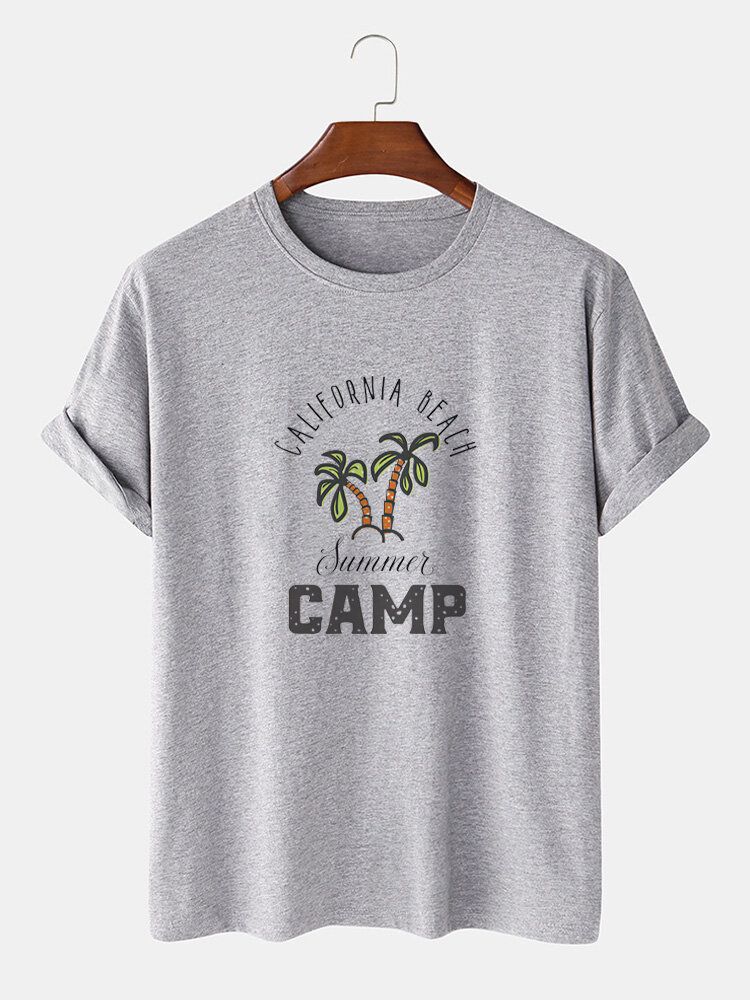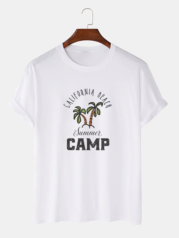 Mens Palm Tree Letter Print Cotton Short Sleeve T-Shirts