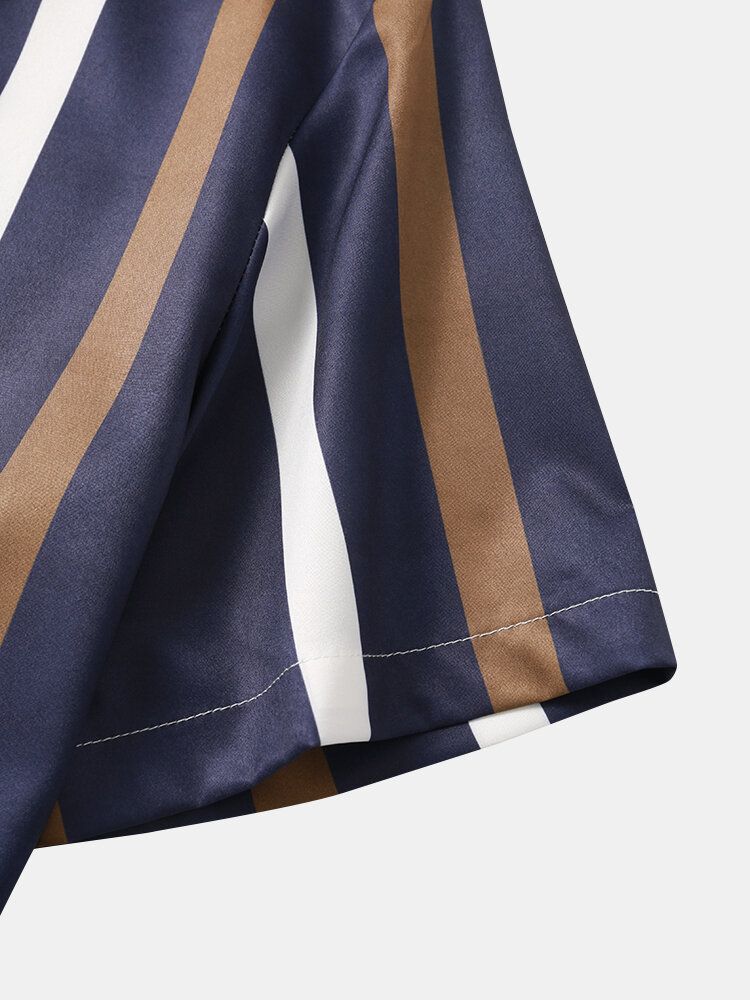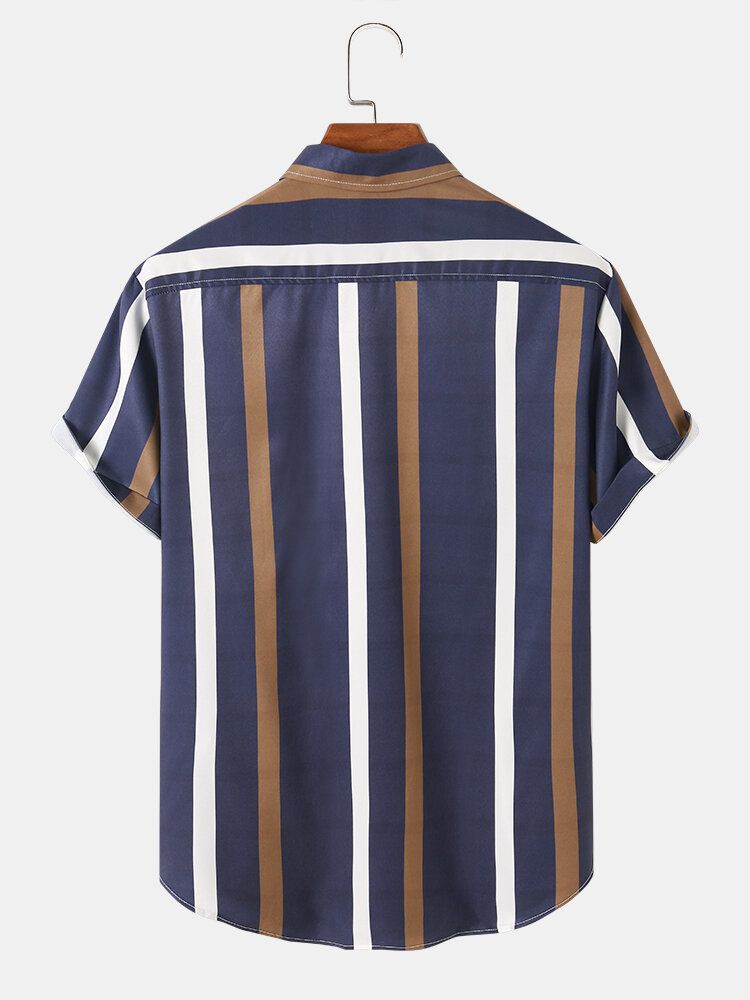 Mens Vertical Striped Button Up Casual Short Sleeve Shirts