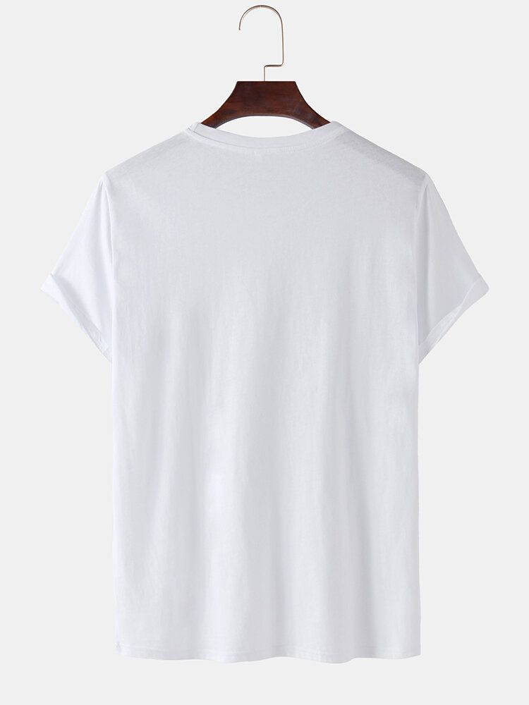 Mens 100% Cotton Mushroom Pattern Plain Short Sleeve T-Shirt