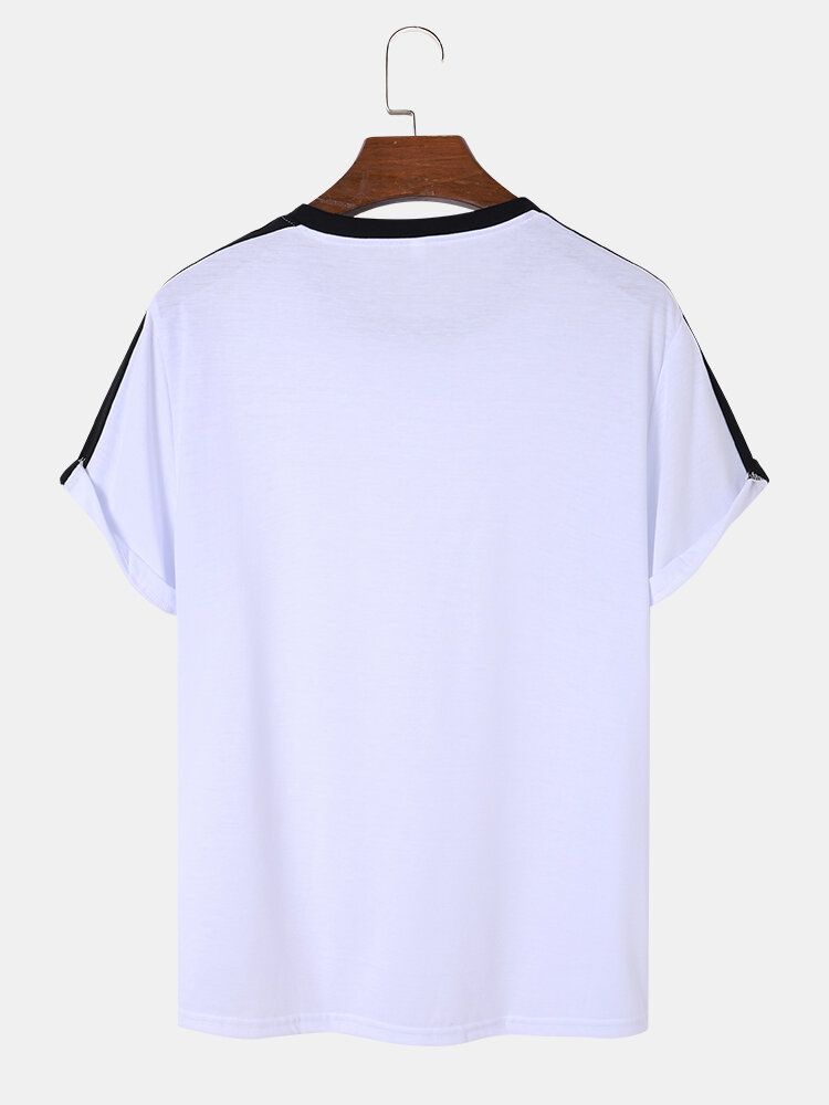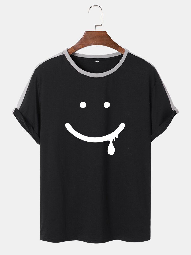 Mens Smile Face Print Side Stripe Street Short Sleeve T-Shirts