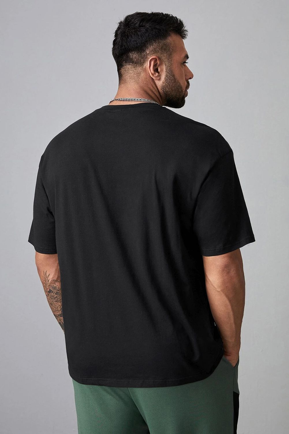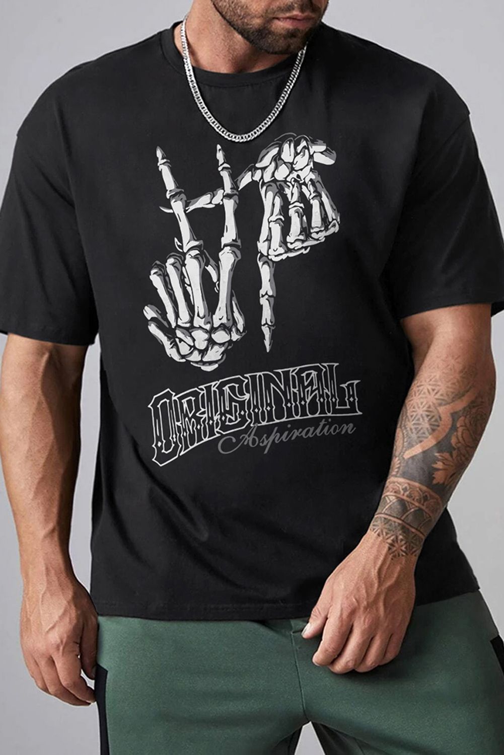 Black Skeleton Gesture Letter Print Men's Oversized Tee