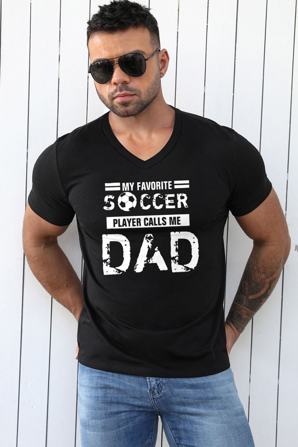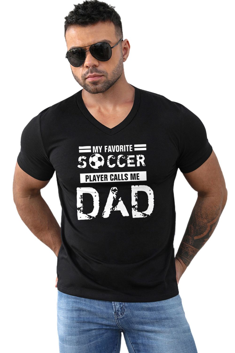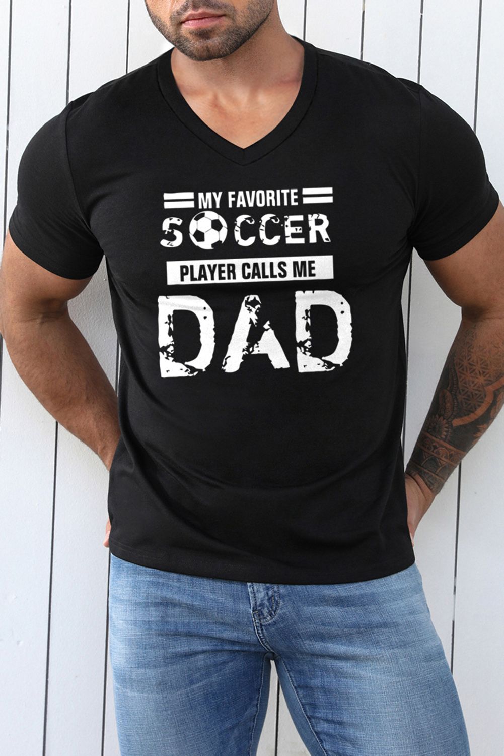 Black SOCCER DAD Letter Graphic Print V Neck T Shirt