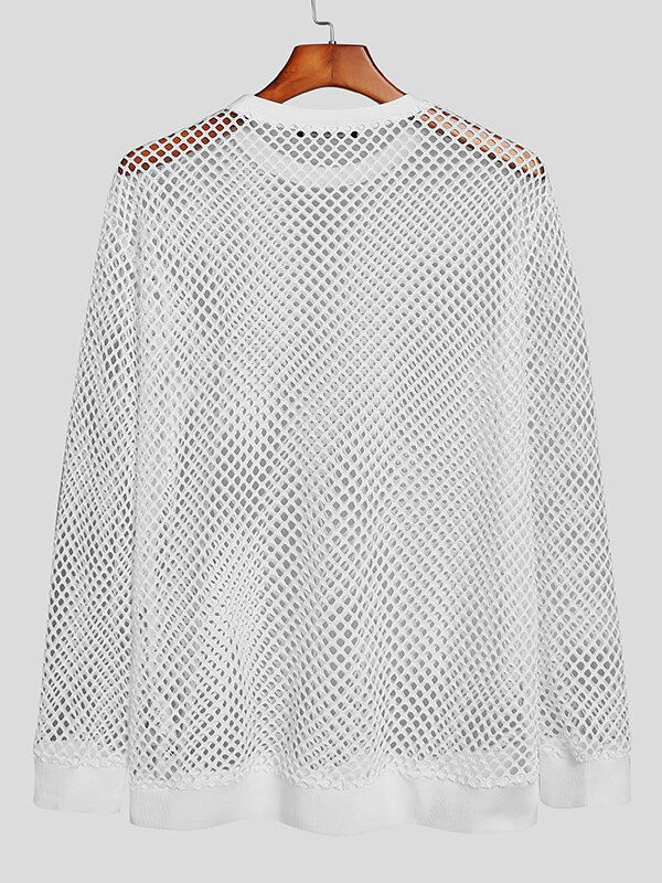 Mens Hollow Out Knitted Round Neck T-Shirt