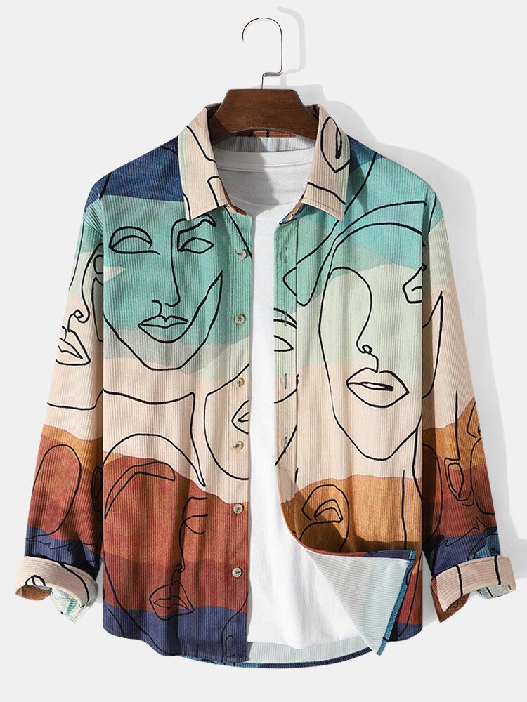 Mens Corduroy Art Printed Colorful Long Sleeve Front Buttons Shirts