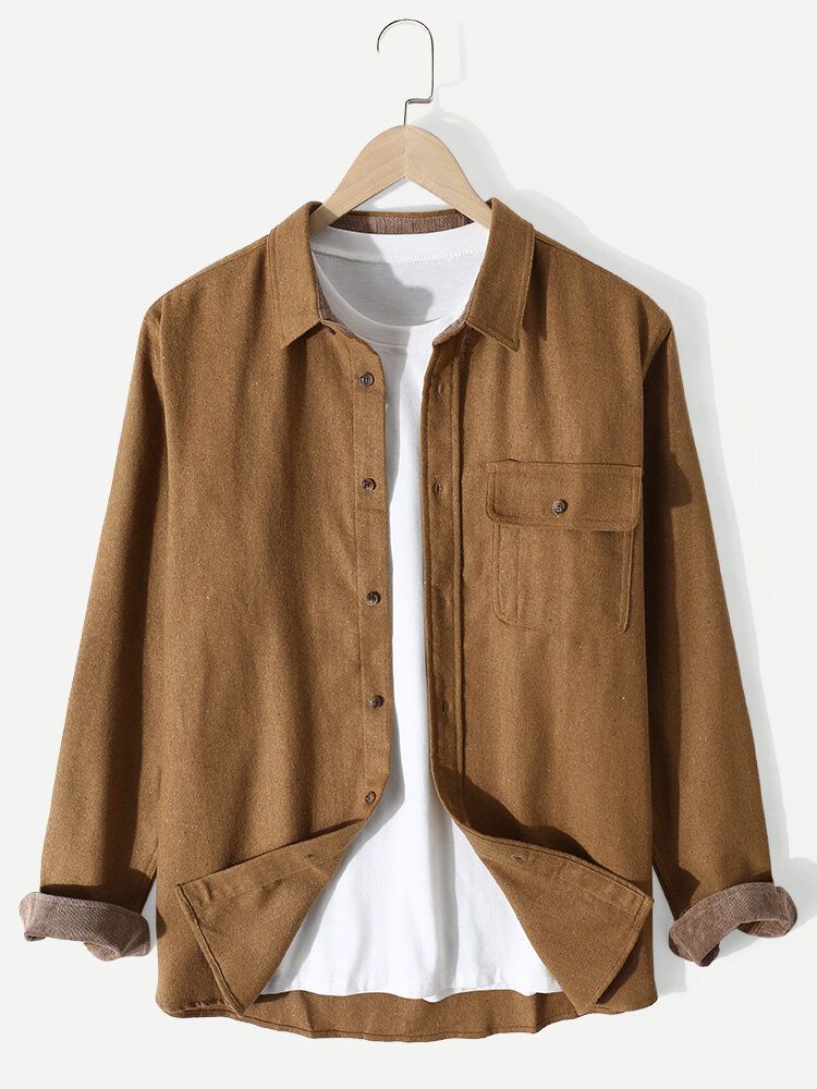 Mens Flannel Solid Button Up Pocket Basics Long Sleeve Shirts