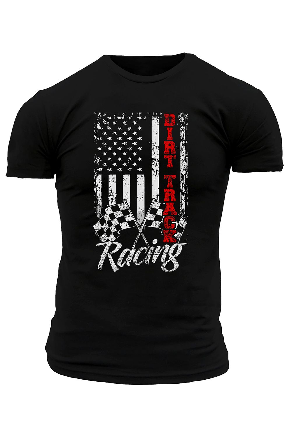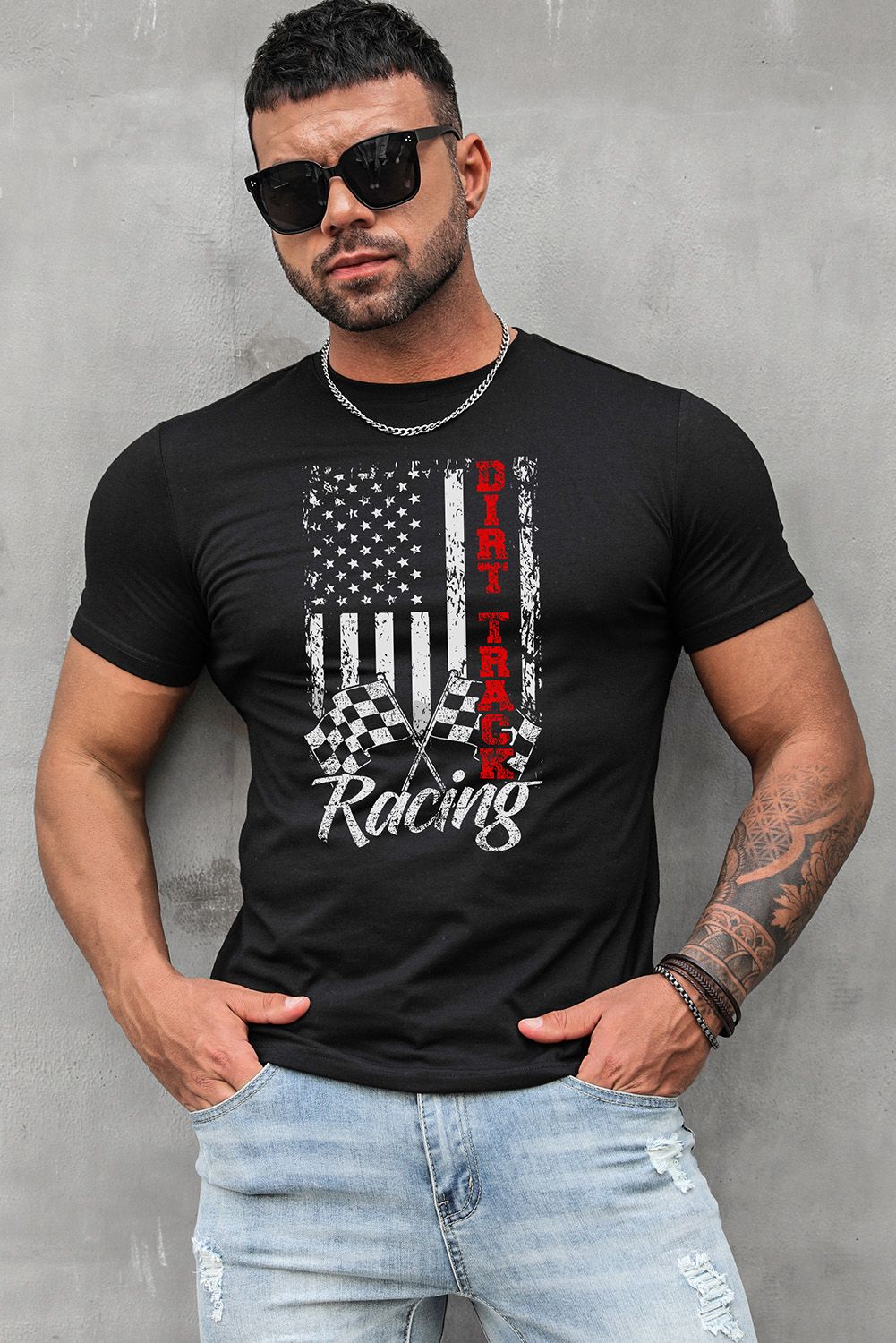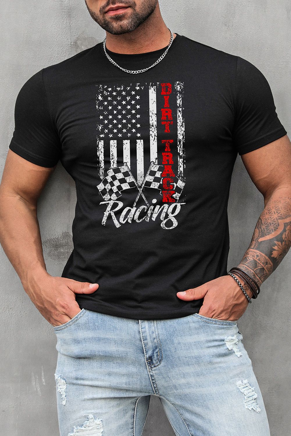 Black Racing Dirt Track Flag Graphic Print Slim Fit Men's T Shirt