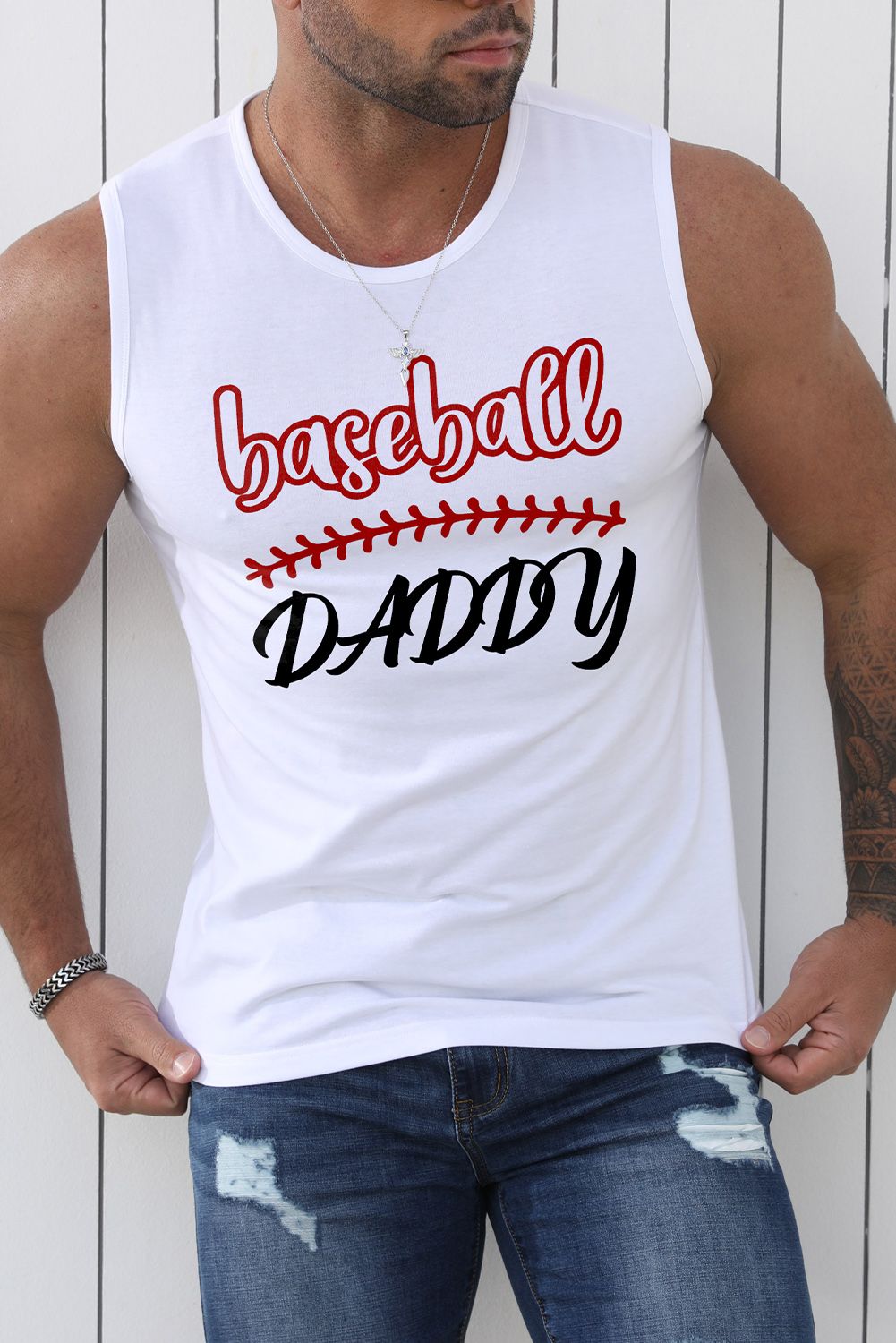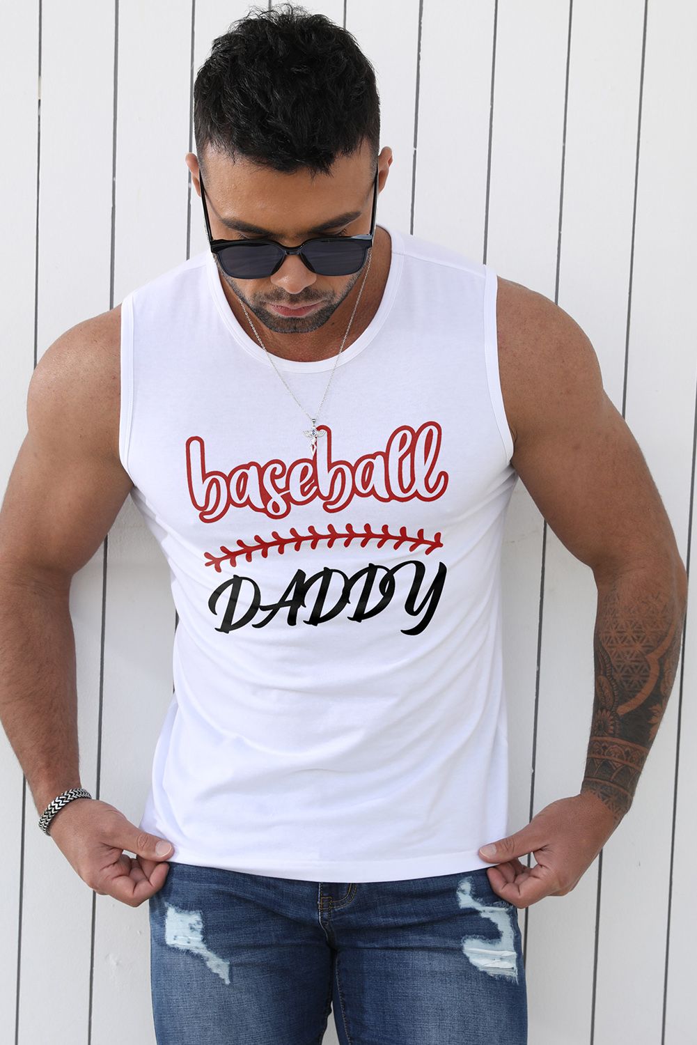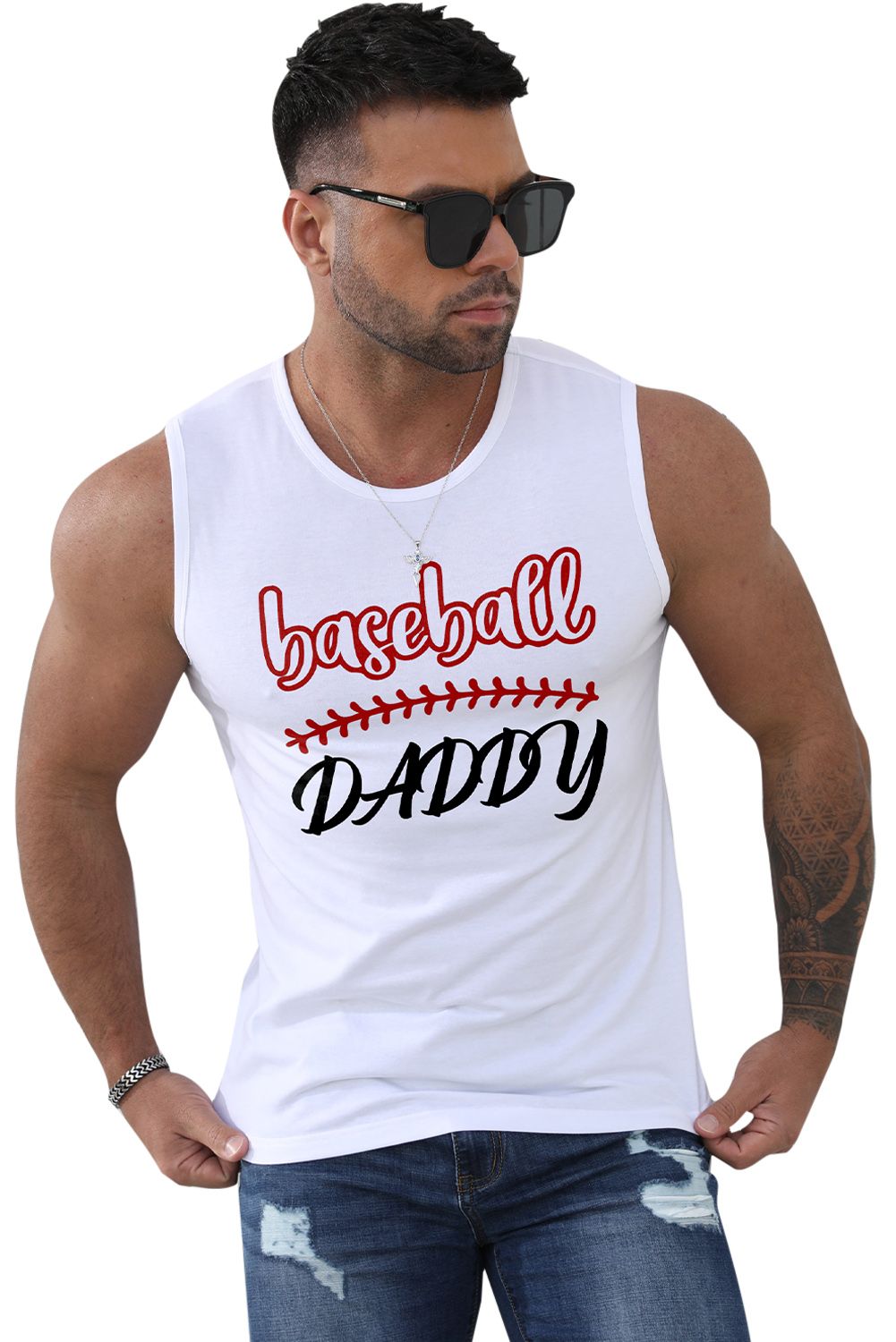 White Baseball Daddy Graphic Print Crew Neck Men's Tank Top